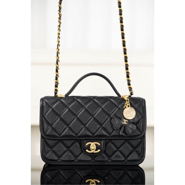 클로버 참 탑 핸들 숄더백 블랙 19.5x12x6.5