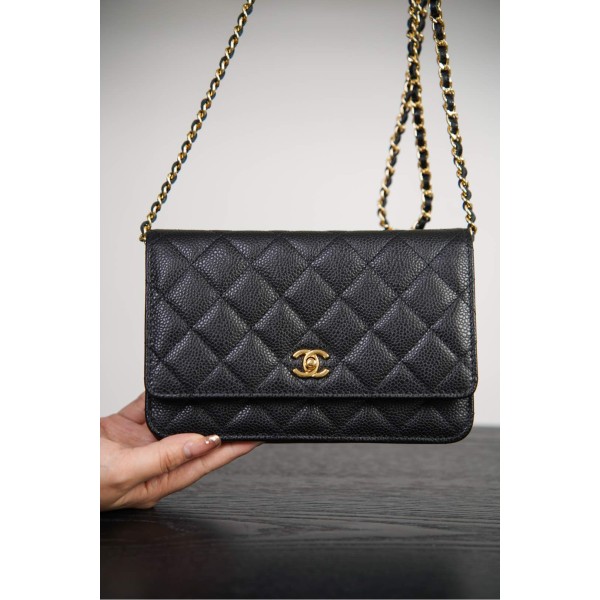샤넬 클래식 체인 지갑 금장 블랙 19cm