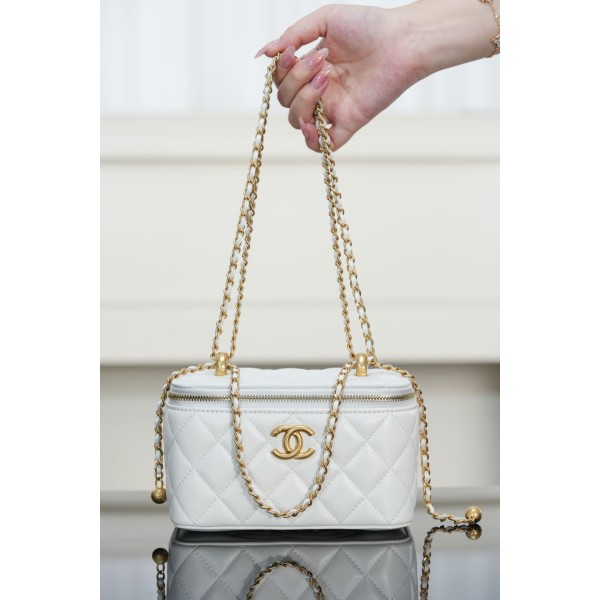샤넬 체인탑 핸들 베니티백 골드 메탈 화이트 9.5x17x8 > BAG