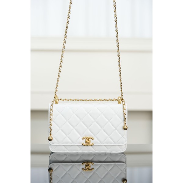 샤넬 램스킨 체인 지갑 크로스백 화이트 금장 12x19x3.5 > BAG