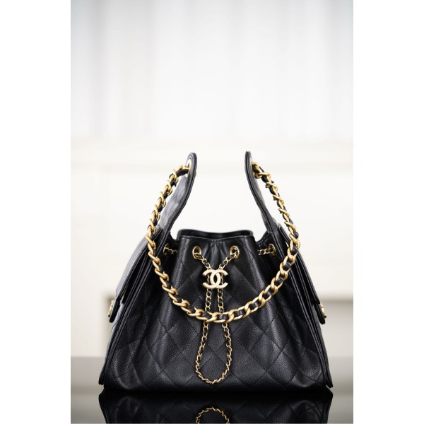 샤넬 25 스몰 핸드백 그레인드 카프스킨 골드 메탈 블랙 30x26x14 > BAG