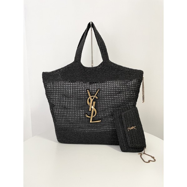 생로랑 라피아 토트백 블랙 772191 37-55*43*5