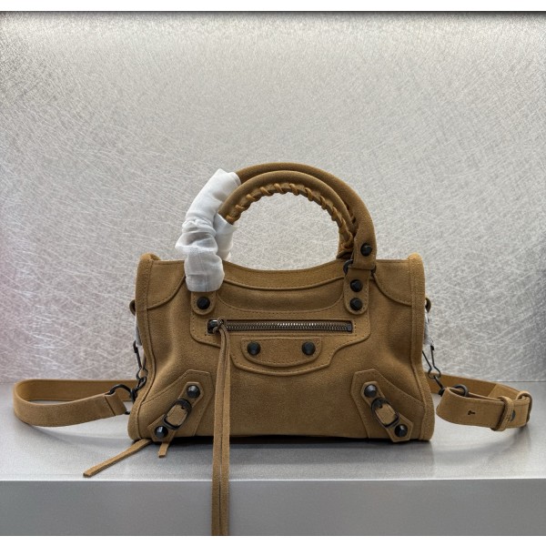 발렌시아가 르 시티 백 스웨이드 카멜 미니 24*16*9