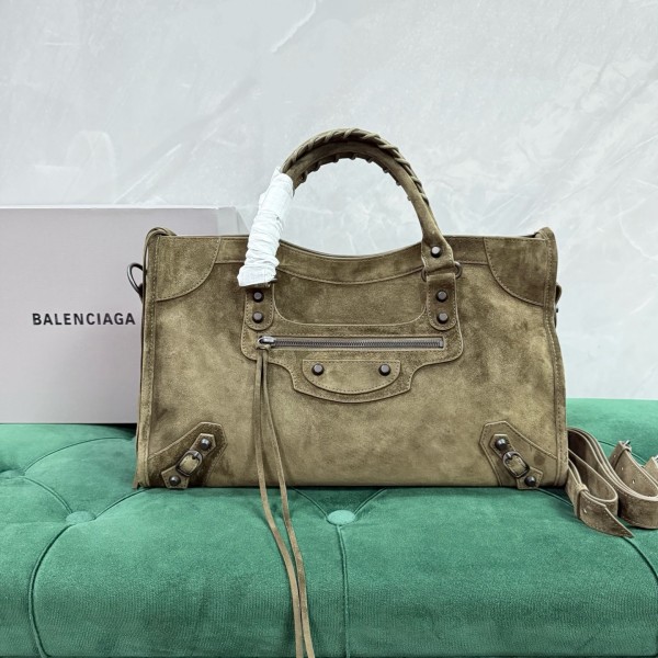 발렌시아가 르 시티 백 스웨이드 카키 미디움 38*24*14