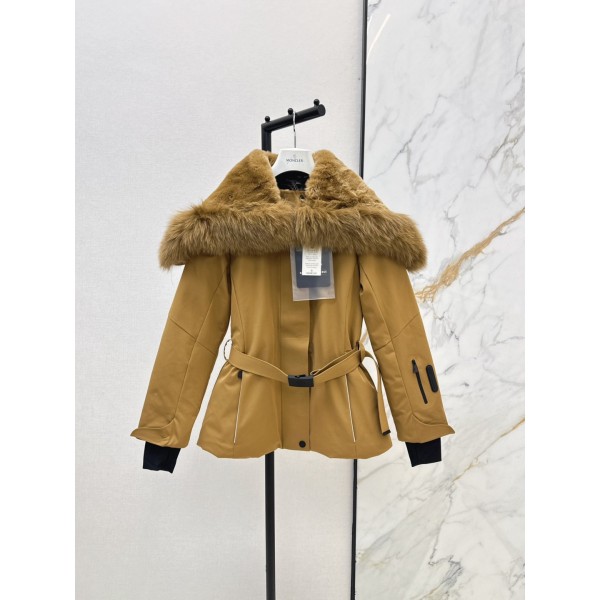 몽클레어 그레노블 폭스퍼 숏패딩 베이지