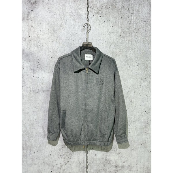 미우미우 체크 후드 자켓 그레이