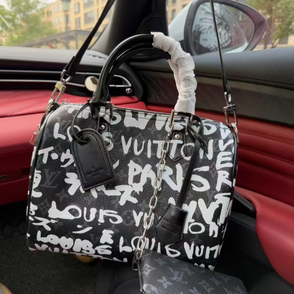 루이비통 스피디 P9 반둘리에 30 스크리블 블랙 화이트
