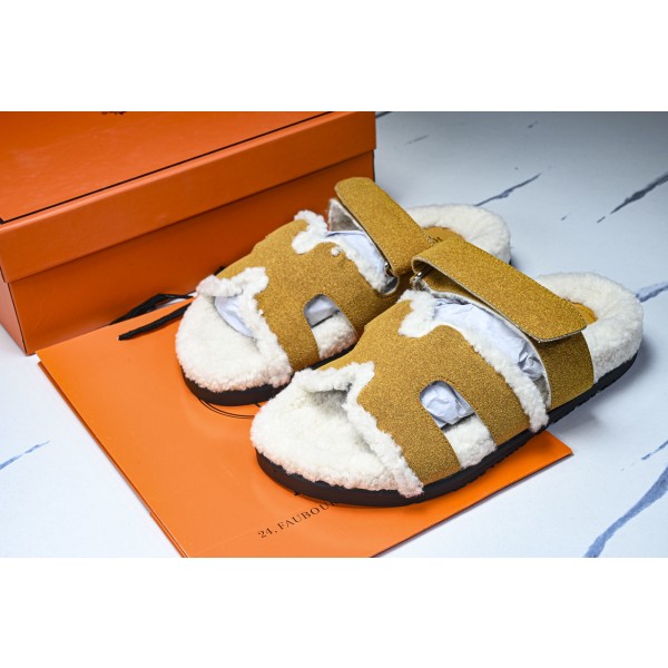 에르메스 시프레 시어링 샌들 브라운에크루 > SHOES