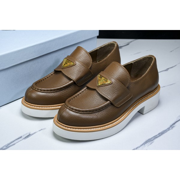 [B9] 프라다 브러시드 가죽 로퍼 브라운