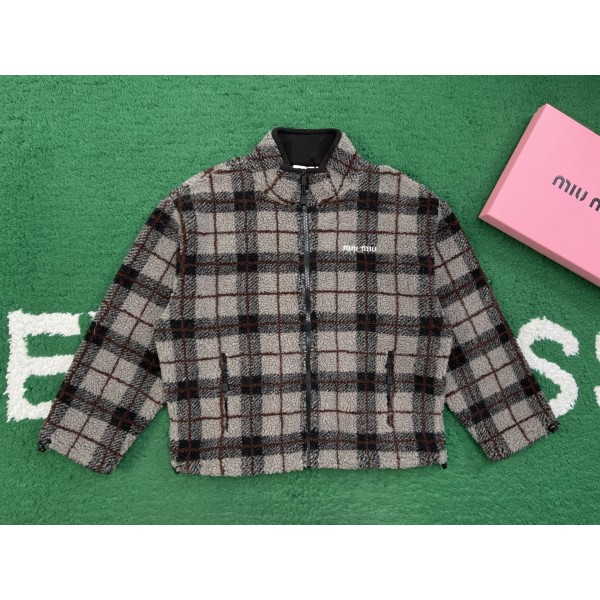 [레어샵] 미우미우 체크 테디 지퍼 재킷