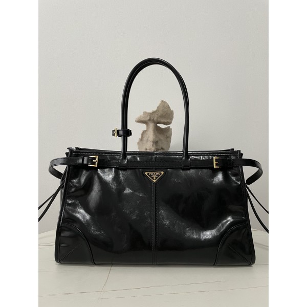 [블랙프레임] 프라다 보니 가죽 토트백 라지 블랙 1BA433 38*24*12